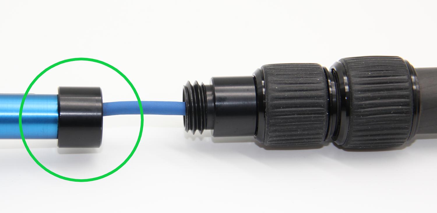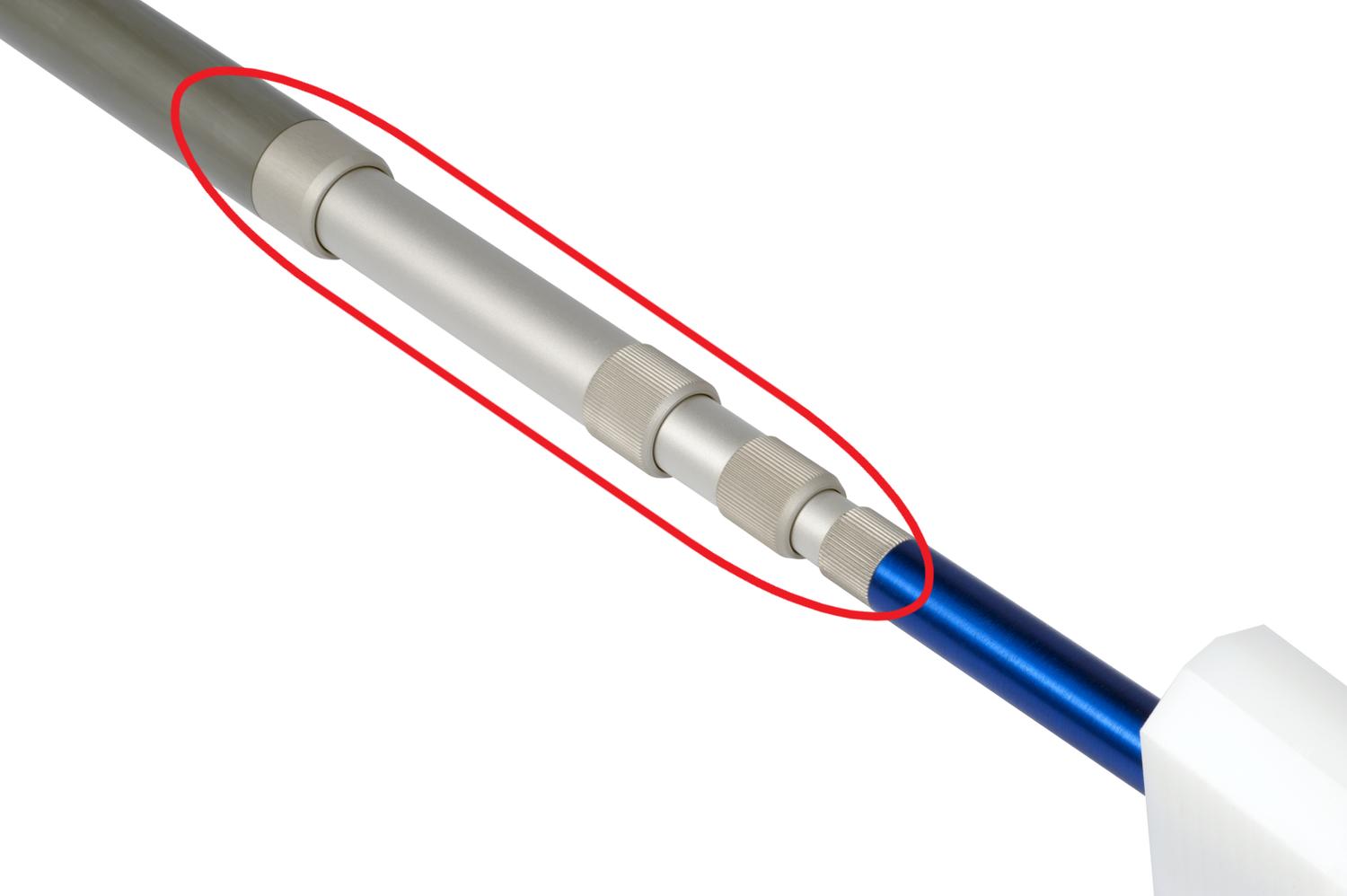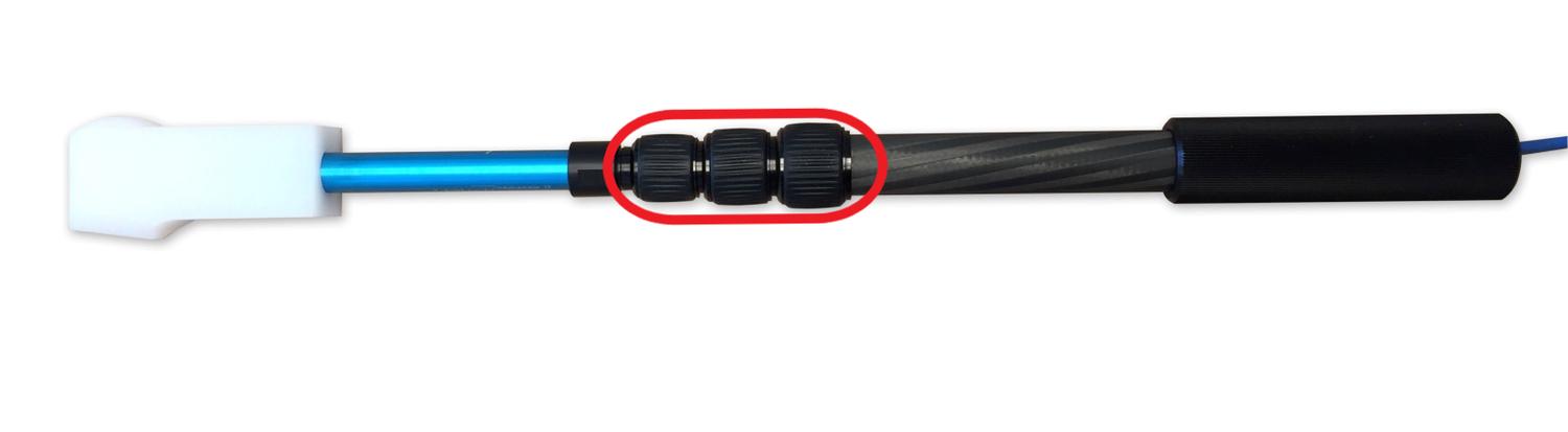 The new Carbon Telescopic Rod with 2 segments has a larger diameter than the blue handle of the AirSpeed/2 probe; this adapter bridges that difference.