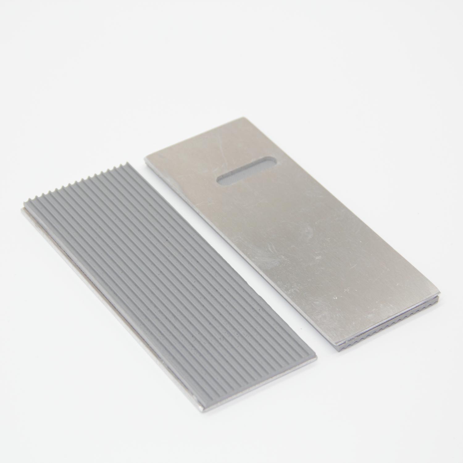 Set of two black or gray rubber pads - with a aluminum backing plate - to replace worn grip plates of the Capto V3 generation (part nr. 9 in the Capto User Manual). Replace the grip plates when the metal frame parts nearly touch each other, as shown.