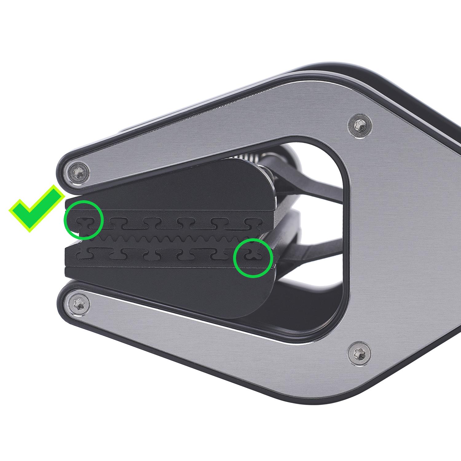 Set of two black or gray EPDM synthetic rubber pads (part nr. 9 in the Capto User Manual) to replace worn grip plates of the Capto V4 generation. Per side, simply loosen the two screws for about 1.5 rotation, exchange the grip plates en tighten the screws again.